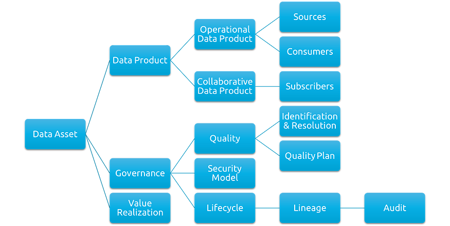 如果數據資產不具有可衡量的價值,則不應將其視為資產。確定該價值以及如何衡量它可能是一項復雜的任務,因此從高級資產開始是有意義的,因為我們可以將它們鏈接到更高階的元素,并且當我們進一步分解價值時,我們可以將其鏈接到特定的子資產和實際操作數據產品本身。