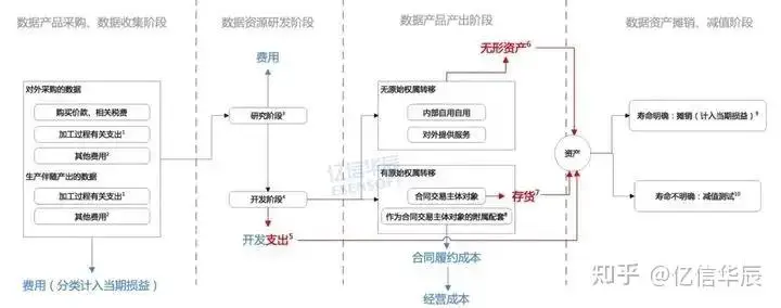 對外采購的數據一是需要付錢和相關稅費,二是加工過程有關支出,包括數據脫敏、清洗、標注、整合、分析、可視化等費用。三是其他費用,包括數據權屬鑒證、質量評估、登記結算、安全管理等費用。生產伴隨產生的數據就是通過自己的系統生產的數據,也會有一定的加工過程中的支出費用和其他費用。