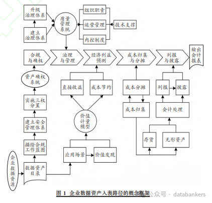 數據資產確權系統及其質量管理系統建設是企業數據資產入表的基本前提,包括數據資產的合規、確權、治理與管理等數據資產經營活動。這些基本前提只是滿足了數據資產入表的基本要求,但數據資產的場景依賴性本質上要求對其進行適宜的經濟利益預測。為規范地描述預測出來的這種經濟利益,企業需要實施有效的會計處理或入表活動,包括數據資產成本歸集、分攤,數據資產列報與披露等。實施上述過程的結果是既能促進企業內部財務結構優化與資產價值提升,又能通過為報表使用者提供決策有用信息,為企業拓展外部融資渠道,形成真正意義上的數據新質生產力。需要說明的是,數據資產入表行為盡管不涉及對現有會計準則體系的原則性突破,但這畢竟是一項新興會計業務,因此本文既著重考察數據資產入表的前提條件和基本路徑,又著重考察對企業數據資產會計進行處理的具體方法,從而為企業實施數據資產入表提供理論支撐與實踐參考。