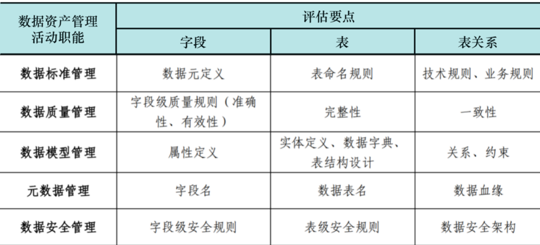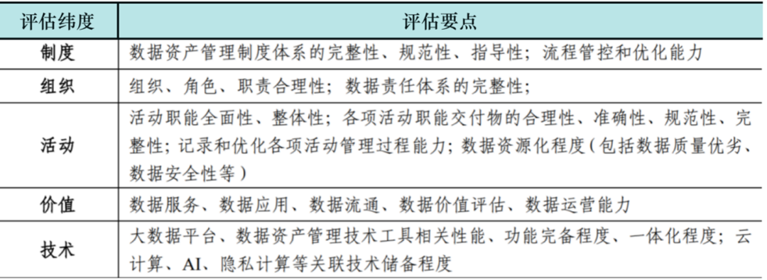 表1 數(shù)據(jù)資產(chǎn)管理能力評(píng)估維度及要點(diǎn)