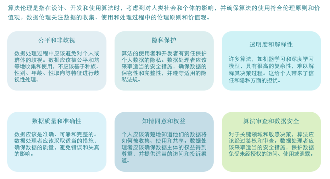 在人工智能算法應(yīng)用中,需要關(guān)注數(shù)據(jù)倫理問(wèn)題,確保算法的公正性、透明性和可解釋性。同時(shí),加強(qiáng)人工智能算法監(jiān)管和評(píng)估機(jī)制建設(shè),防范算法濫用和歧視等問(wèn)題。