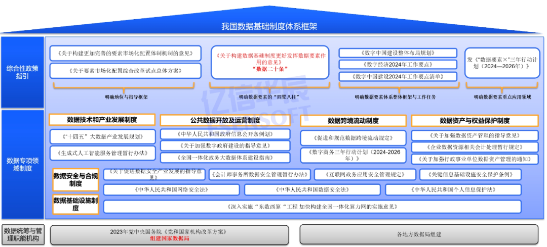 尤為值得關(guān)注的是,2024年5月國(guó)家數(shù)據(jù)局發(fā)布的《數(shù)字經(jīng)濟(jì)2024年工作要點(diǎn)》與《數(shù)字中國(guó)建設(shè)2024年工作要點(diǎn)清單》,更是從構(gòu)建數(shù)字基礎(chǔ)設(shè)施、完善數(shù)據(jù)基礎(chǔ)制度、培育數(shù)據(jù)產(chǎn)業(yè)及市場(chǎng)、推進(jìn)數(shù)字生態(tài)建設(shè)等多個(gè)維度出發(fā),為數(shù)據(jù)要素化發(fā)展指明了方向。
