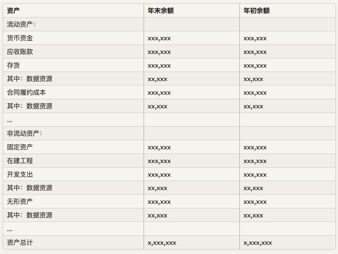 列示方式:無形資產 xx,xxx 其中:數據資源 xx,xxx