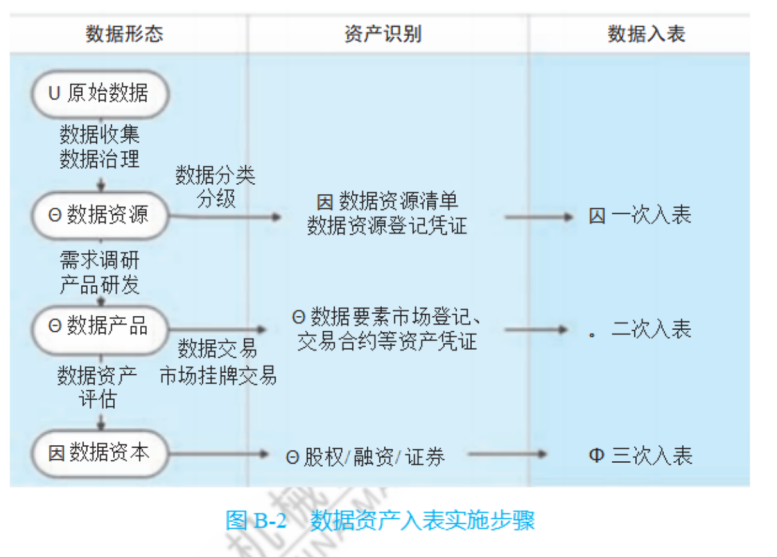 A: 數據資產入表的詳細實施步驟如圖B-2所示,具體內容參見《一本書講透數據資產入表》第6章。