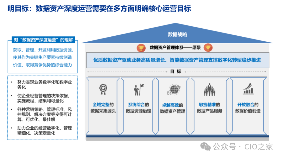 明目標(biāo):讓數(shù)據(jù)驅(qū)動(dòng)精細(xì)化運(yùn)營數(shù)據(jù)資產(chǎn)深度運(yùn)營的核心目標(biāo)是實(shí)現(xiàn)企業(yè)的經(jīng)營數(shù)字化、管理精細(xì)化和決策定量化 。這意味著,企業(yè)的決策依據(jù)、實(shí)施流程和結(jié)果都將變得可量化、可優(yōu)化,各種營銷策略、管理標(biāo)準(zhǔn)和風(fēng)控規(guī)則也將實(shí)現(xiàn)最佳解。