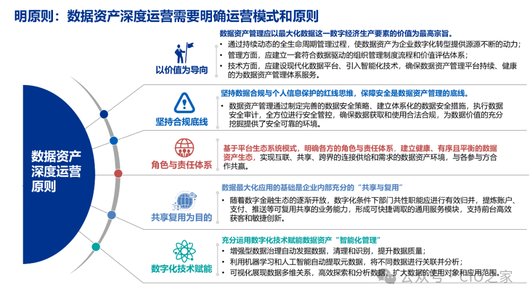 明原則:合規(guī)為基,價(jià)值為導(dǎo)數(shù)據(jù)資產(chǎn)的深度運(yùn)營必須遵循一定的原則: