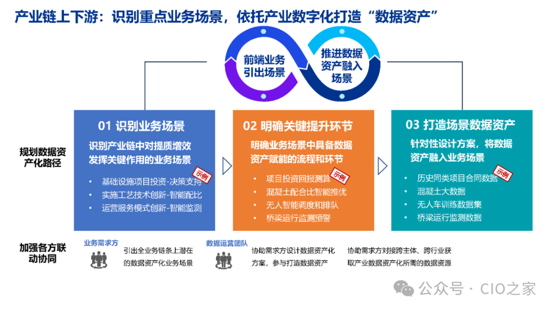 產(chǎn)業(yè)鏈上下游:識(shí)別重點(diǎn)業(yè)務(wù)場景,依托產(chǎn)業(yè)數(shù)字化打造“數(shù)據(jù)資產(chǎn)”,實(shí)現(xiàn)產(chǎn)業(yè)鏈的提質(zhì)增效 。