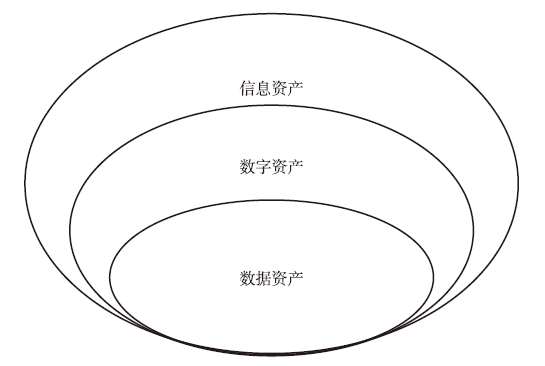 數字資產通常以電子形式存在,而信息資產可能以物理或電子形式存在。數字資產更加側重于數字化的數據、軟件和網絡資源等內容,而信息資產則涵蓋了更廣泛的信息資源,包括了所有對組織運作至關重要的信息。數字資產是信息資產的一個子集,具有數字化的屬性和特征,是信息資產的一種特殊形式,二者都具有價值,并且可以在數字化環境中進行交易和管理。數據資產和數字資產在經濟活動中密切相關,相互影響和補充。數字資產的價值往往來自數據的生成、傳輸和分析過程,而數據資產的價值也可以通過數字化轉換變成數字資產。但數字資產的概念更廣泛,除了數據外,還包括數字形式的財產、權利和資源。三者之間的關系如圖1所示。