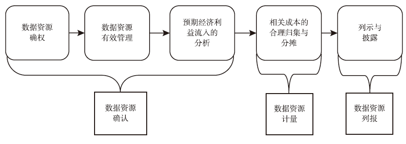 有鑒于此,我們認為有必要首先對數據資源相關的重要概念進行界定和區分,對數據資源入表的理論和演進階段進行追本溯源,以期為后續研究奠定理論基礎;其次基于數據資源入表的“五大流程”,依據現有文獻,結合相關的政策法規及實務處理經驗,深入系統地梳理數據資源入表的邏輯原理和入表路徑,指出現有文獻的短板,以期為后續研究明晰研究方向、彌補研究不足。