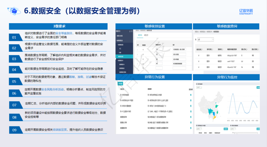 數據安全應該來說是底線,要在底線之上去開展經營活動。現在企業的數據安全比較割裂,大部分都是基于業務系統的信息安全,沒有統一規劃的數據安全,例如數據本身的分級分類管理,用戶訪問這些數據的行為管理,數據對外展示的加密脫敏管理,以及數據安全文化的宣貫推廣。