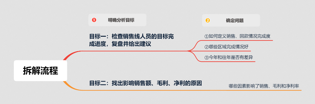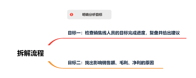 在明確分析目標后,就需要確定為了達成該目標,提出圍繞該目標需要解決的問題。可以使用思維腦圖,寫出在看到該目標后產生的問題。