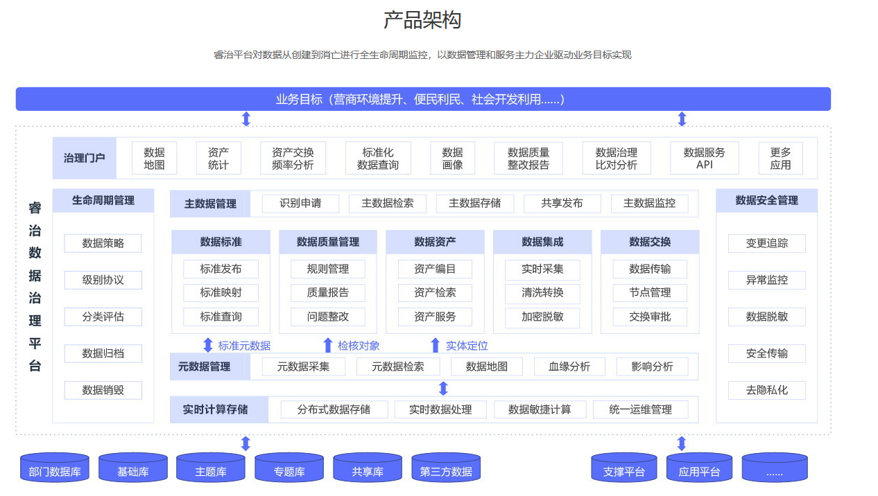 政府想要構建符合自身業務情況的數據治理體系,那么一個成熟的數據治理平臺是必不可少的。睿治智能數據治理平臺由億信華辰自主研發,是一款融合數據治理十大產品模塊,覆蓋數據全生命周期管理的應用平臺,也是目前國內功能齊全的數據治理工具,助力數據標準落地,提升數據質量,實現數據資產融合,快速滿足政府各類不同的數據治理場景。