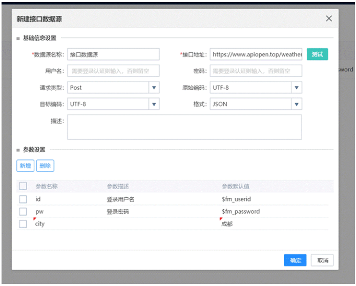 確認接口地址無誤之后,點擊“確定”按鈕,完成新建接口數據源操作。
